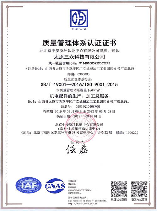 三眾純鐵-質(zhì)量管理體系證書